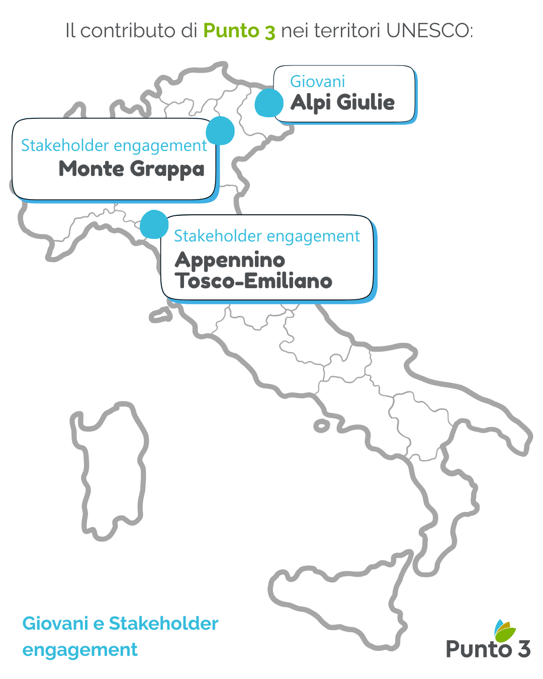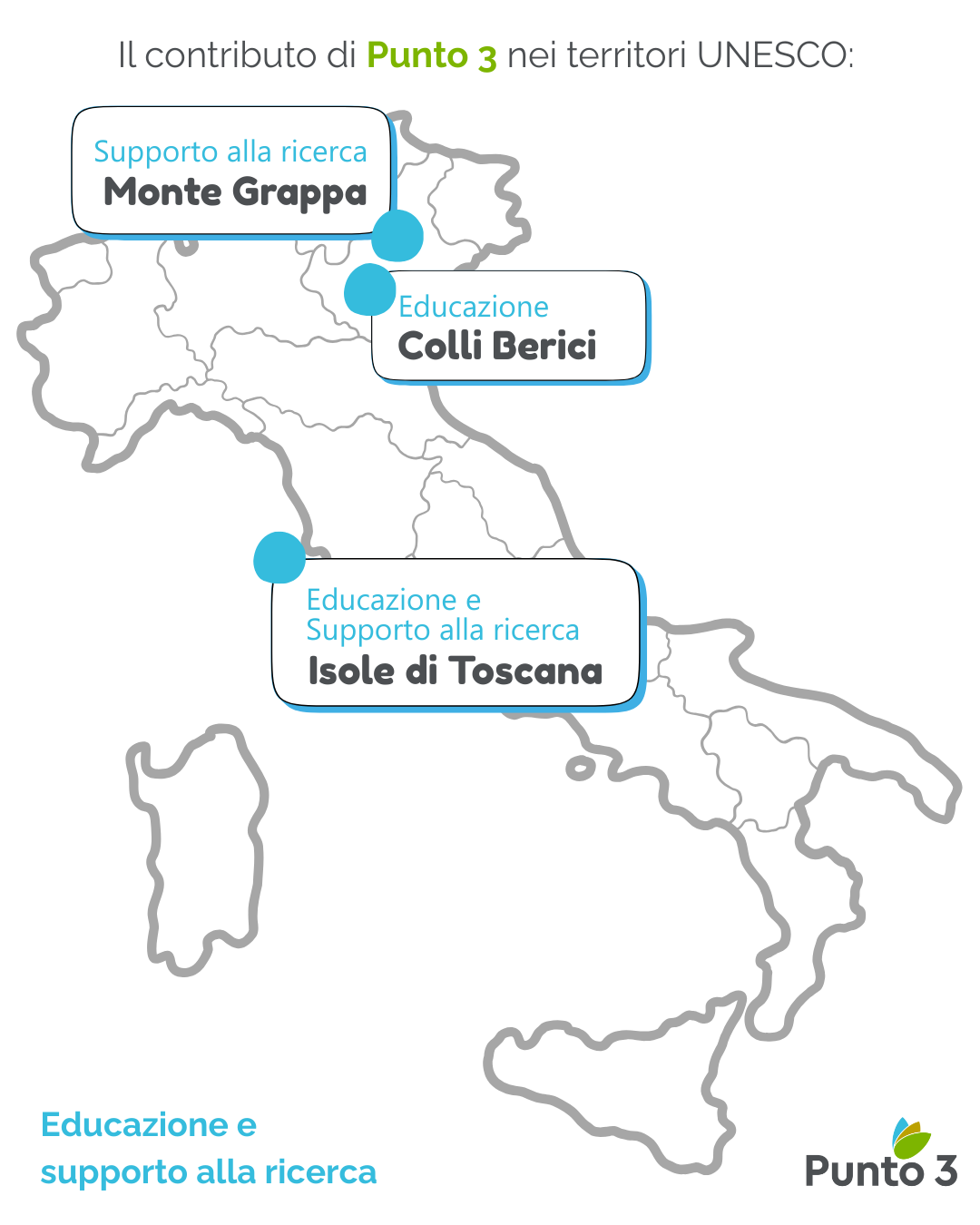 Punto 3 ha anche supportato gli Enti Gestori di alcuni riconoscimenti UNESCO nel rafforzare le collaborazioni con il mondo della RICERCA SCIENTIFICA: è stato istituito il Comitato Tecnico Scientifico della Riserva della Biosfera Monte Grappa e contribuito all’organizzazione dell’evento “BioAT” nell’ambito del quale la Riserva della Biosfera Isole di Toscana ha dato spazio alla presentazione delle principali ricerche scientifiche che riguardano il proprio territorio.