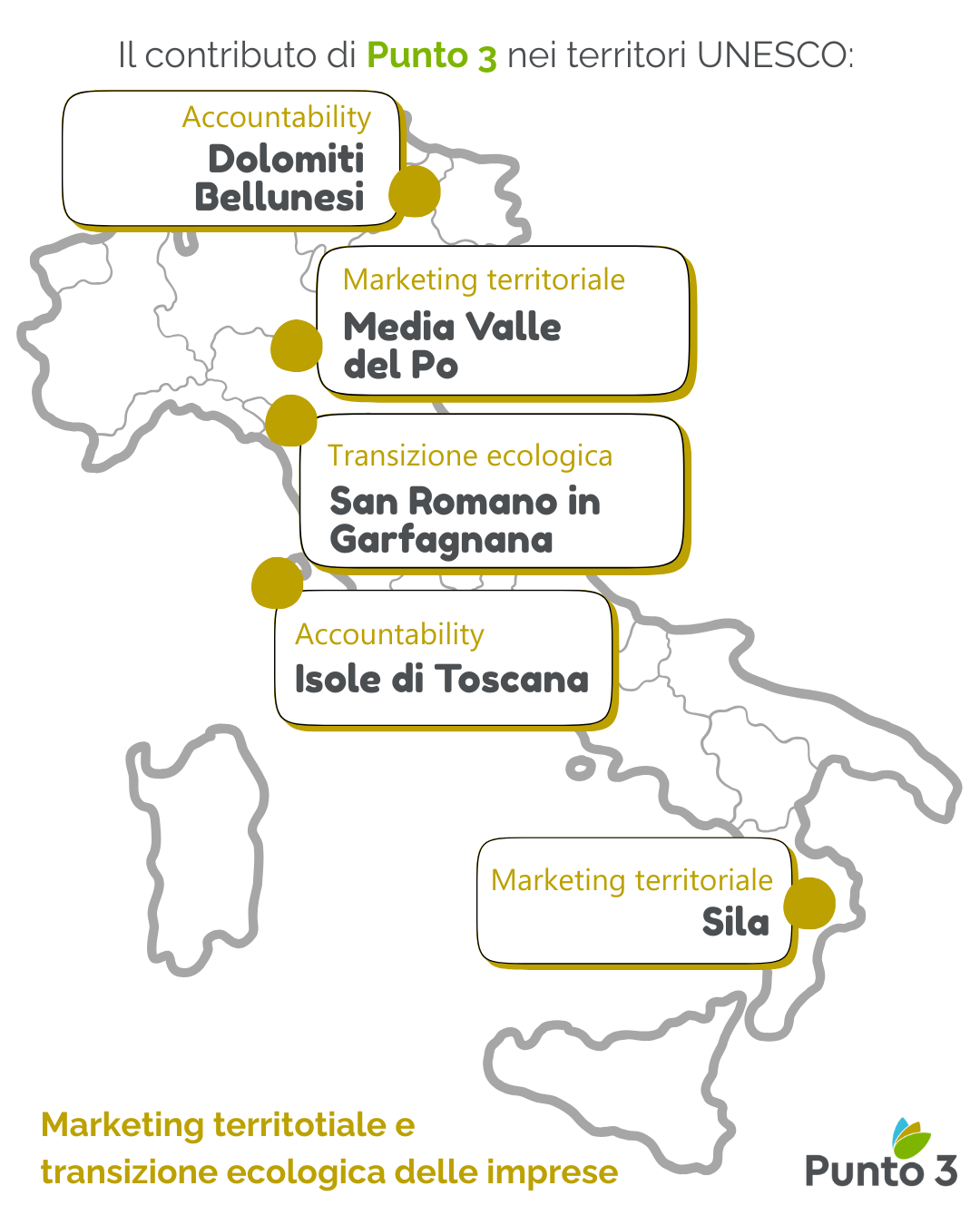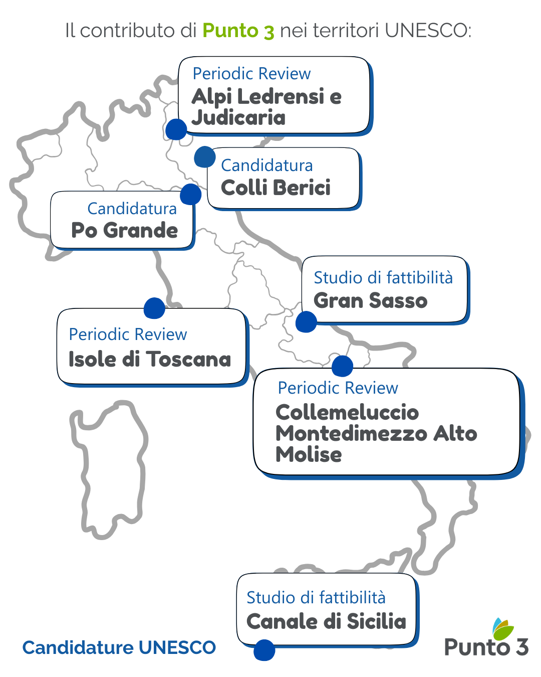 Per maggiori informazioni sui progetti elencati in questo articolo, su altri progetti in questo ambito e sui servizi che Punto 3 può offrire a favore dei territori oggetto di un riconoscimento UNESCO è possibile contattare Filippo Lenzerini, responsabile per il settore “Riconoscimenti UNESCO e Marketing territoriale” scrivendo a filippo@punto3.it